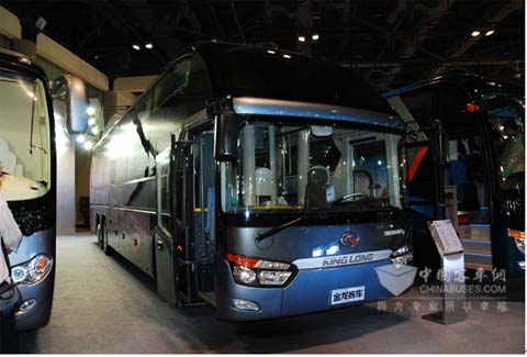 与此同时,大金龙还同台推出XMQ6140P新一代豪华卧铺车型,以满足长途客运市场对豪华大容量卧铺车型的市场需求,填补龙威家族在这一市场领域的空缺。XMQ6140P采用龙威XMQ6129Y的设计平台,在外观上继承了龙威系列大气、尊贵的王者风范,同时针对卧铺客车的特殊需求,进行了多项人性化设计改进。采用龙威系列大马力、高性能动力总成,进一步优化底盘配置,并采用CAN-BUS总线、TPMS胎压自动检测、APU空气处理等先进技术,有力保障了客车的高安全性和稳定性,达到交通部大型高二级客车标准。