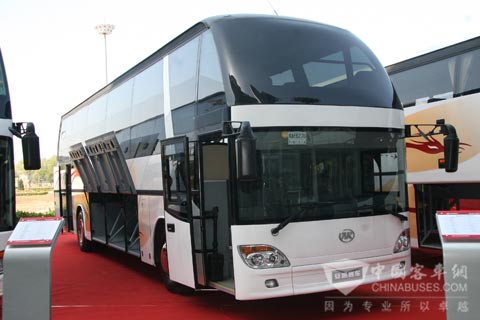 本次会议上展示的5款车型,双层车最为引人注目,高达4米的车身高度,使人产生“鹤立鸡群”的感觉。