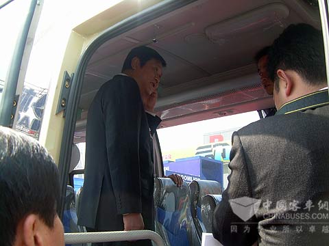 当日上午,出席本届中博会的郑州市市长赵建才等领导一行莅临少林客车室外展台进行了考察。赵市长对少林客车展台的造型、风格予以肯定。他说,少林客车室外展台简捷大方,既突出了河南特色,又展现了自我风采。考察期间,赵市长向少林客车相关工作人员详细询问了本次参展的目的、车型、整车配置等,并就参展细节进行了沟通交流,同时赵市长还饶有兴趣的登上了华意SLG6608C3E,感受了“中巴王”与众不同的优越与舒适。
