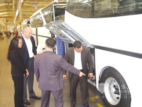 随后,客人们在公司科技交流中心参观了公司最新开发的样车,总经理助理董刚就每款车的性能与特点向客人一一作了介绍,客人们对安凯客车的安全、豪华与舒适性能给予充分肯定,认为安凯客车造型独特,有霸气。