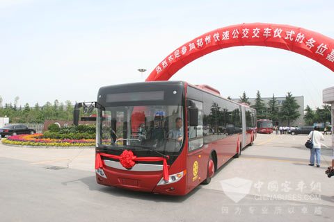 2009年5月19日,对于郑州快速公交和宇通都是一个值得庆祝的日子。当日,郑州快速公交交车仪式在郑州宇通工业园隆重举行。郑州快速公交(简称BRT)项目服务车辆在郑州市相关领导和郑州快速公交项目部、郑州市公交总公司以及新闻媒体共同见证下成功下线交车,标志着郑州快速公交系统建设取得重大进展,不日郑州市民就可乘坐高档快速公交出行。