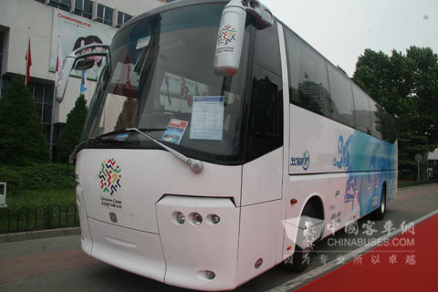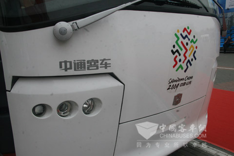 另外,记者在展会现场注意到,该款展车曾经为服务奥运会专门设计的独特图案,已经更换成新的图案:蓝白相间的车身上,绘着一个“360度科技节能神州行”的图标。据中通客车企业管理部副部长李笃生告诉完美作业网有免费视频记者,2009年,为了更好地实现企业节能环保发展之路,中通客车结合自身优势提出了“科技节能领航者”的品牌发展思路,并于5月8日,在山东济南启动了“360度科技节能神州行”巡展活动,要以自身掌握的先进技术为支撑,除了实现公司自身研发生产的节能环保外,还要从车辆选型、车辆日常管理、车辆节油驾驶等方方面面帮助客户实现360度的全方位、立体式节能经营,给客户带来真正的价值服务。