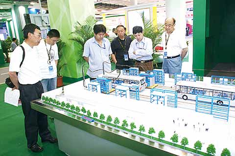 近日,在京举办的车展上,一个新能源电动客车更换系统示意模型,吸引着人们驻足观看。这是由北京理工大学和北京电巴公司联合研制,可以在8分钟之内完成一辆电动客车全部动力电池箱的更换系统,它可保障电动客车24小时不间断运行。