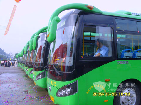 新车来了!5月25日,广东省肇庆城区公交车队伍又添新面孔,62辆环保公交车“肇庆城巴”开始上路,包括10路、21路等令市民备受颠簸之苦的“老爷车”,也全部换成了颜色翠绿的宇通新型城市公交车。