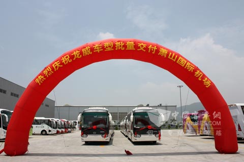 2009年6月17日下午,9辆大金龙龙威大客XMQ6129Y交付萧山国际机场。交车庆祝仪式上,大金龙国内销售部经理助理庄树志和杭州萧山国际机场汽运副总经理虞锦立分别代表双方致辞,并在掌声和礼花中交接了象征携手共赢、开创未来的金钥匙。