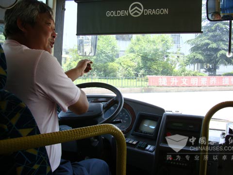 仇春伟是上海大众交通公司的一名老司机,因为技术精湛,2006年被调来专门驾驶混合动力公交车。他告诉记者:“混合动力车操作跟柴油车有点不同,刚开始不适应。但渐渐习惯了你就会发现,开混合动力车比开柴油车要轻松多了。没有那么多挂档换档的动作,驾驶更加平顺,噪声非常小。现在开混合动力车已经习惯了,也有感情了,如果再让我去开柴油公交车反而会觉得不适应。”