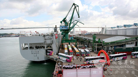 6月26日上午,经厦门海关验放,120辆大金龙高档豪华客车在厦门东渡码头装船,即将驶往沙特阿拉伯。这是自2004年以来,大金龙连续6年第六批出口沙特阿拉伯的豪华客车。目前大金龙已经累计向沙特出口约1100辆客车,是我国在该地区客车保有量最大的企业。