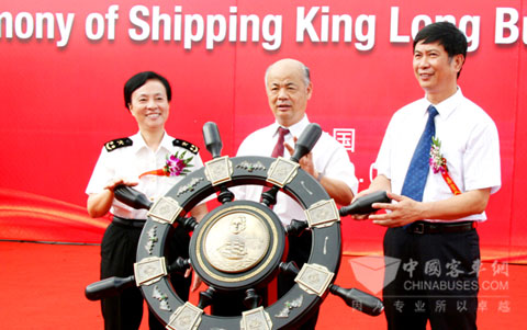 厦门市委常委、常务副市长丁国炎(中)、厦门海关副关长钱明城(左)、大金龙董事长孙建华(右)共同启动装船仪式