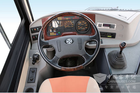 悍马进风口格栅设计粗野中彰显简洁,泾渭分明,格栅造型与整车造型和谐统一,克服了同类产品设计不系统破坏前围扩孔散热的问题。通过20多个省市及国内主要山区道路的研究,将前后保险杠离地高度分别为360mm和630mm,通过性能优于同类产品3倍之多。兼顾山区弯道多和乘客舒适性,将车宽设定为2460mm的山区车型黄金宽度,比同类产品宽10-80mm,极大程度提高车辆平顺性能和乘座舒适性能,特别是在弯道多的山区行驶时舒适性十分突出。不少客车企业为节约成本,前置车套用后置客车车身因而车辆重心高度不合理、通过性能和抗侧倾性能差等问题十分突出,而悍马在这方面都进行过认证和考虑。悍马车内过道宽度为580mm,优于同类产品70-100mm,提高了紧急情况下的快速通过性能,同时也大大提高车厢内大型包裹拖拽的通过性能。