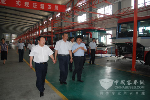6月30日上午,山东省原省长李春亭一行,在莱阳市长孙德奎、市政协副主席王乐积、市人大副主任初寿山等省市领导的陪同下参观考察了舒驰客车。李春亭一行对舒驰客车近几年来坚持科学发展观,克服资金困难,积极开发新产品取得的成绩给予了充分肯定。