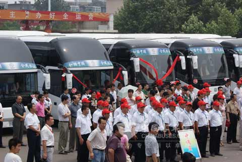 为确保首批赞助车辆在全运会网球团体决赛开赛前投入使用,中通客车全体动员,倒排工期,加快车辆生产和组装速度,克服种种困难,实行24小时不间断工作,按期交付了车辆。在整个全运会期间,中通客车将为全运会组委会提供200辆高等级客车参与全运会车辆保障服务工作,这是中通客车继去年成功服务北京奥运会之后又一次为重大体育赛事提供车辆服务工作。