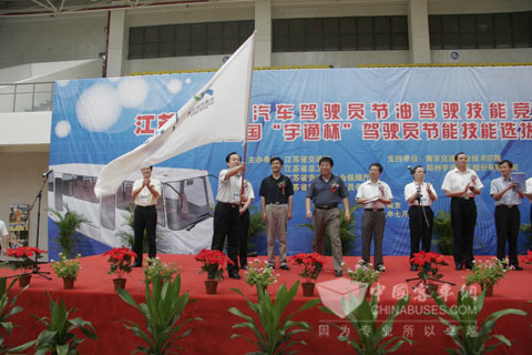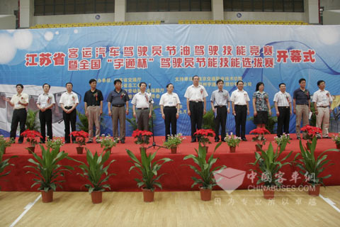 7月24日上午九点,江苏省客运汽车驾驶员节油驾驶技能竞赛暨首届全国道路运输行业“宇通杯”机动车驾驶员节能技能选拔赛开幕式在南京交通职业技术学院院内举行,江苏省总工会副主席胡同军宣布大赛开幕,江苏省交通厅副厅长李先友、交通专业人员资格评价中心培训管理处处长刘大鹏、郑州宇通集团党委副书记饶金有等有关领导出席了启动仪式。
