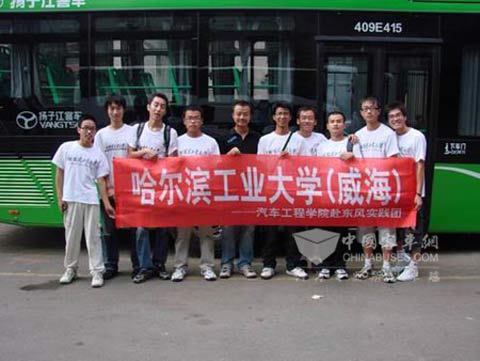 据悉,东风实践团的这10名年轻的小伙子均来自山东威海哈尔滨工业大学,这次来武汉的主要目的是对东风集团下的几个单位进行参观、学习。下面一起欣赏一下他们在扬子江客车参观学习的图片:
