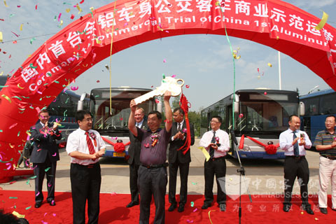 国内首台全铝车身公交客车商业示范运营交车仪式
