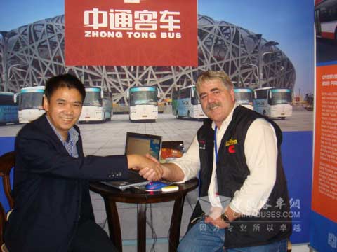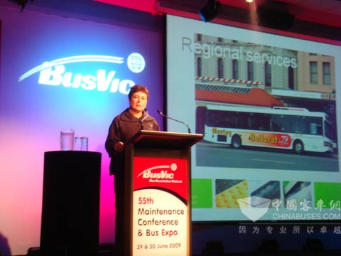 中通客车技术中心主任罗高华代表公司参加此次展会,回答国外记者提问是说到,“中通客车将本着一贯实在的精神,利用奥运产品的科技优势,将中通新能源产品推广到澳洲市场”。