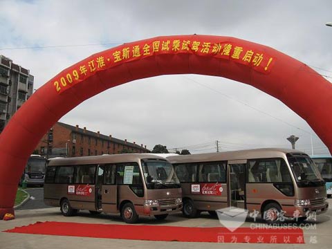 2009年8月11日,江淮公司销售总公司组织策划的2009江淮宝斯通全国性试乘试驾活动正式启动。本次活动受到了公司上下领导高度关注。江淮公司王泉龙总经理、许树生副总经理、夏帮守总经理助理、销售总公司章晓明总经理、林斌副总经理、王祥虎副总经理、蔡瑞玲副总经理等均出席了本次活动。江汽股份底盘营销公司查宝应总经理、于华部长也应邀亲临启动现场。