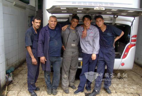 天还未放亮,我们执意要去修理故障客车。来到停车场,记下车号、里程、发动机等,经试验机油压力报警并甩机油。我们调整了机油压力并更换机油滤清器,故障排除。看到海格人的一丝不苟, “中国人能干”、“海格客车买得值”,这是卡巴希说得最多的话。