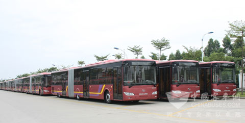 8月12日,大金龙厂区,25辆18米BRT公交客车整装待发,只待船期一到即开赴港口装船交付客户。随着该批车辆交付,大金龙2009年出口数量超过1300辆,出口业绩行业领先。