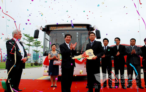 中国首辆自主品牌混合动力客车出口仪式