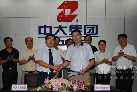 日前,南京道路运输协会常务副会长刘克俭、副会长沈富成带领其会员单位主要负责人一行40多人来访中大集团。2009年8月21日,双方就中大汽车在南京地区的推广应用签订了合作协议,签约仪式在中大集团隆重举行,南京市道路运输协会常务副会长刘克俭和中大集团总裁徐连宽代表双方在协议书上签字,盐城市副市长丁建奇,南京道路运输协会驻会副会长沈富成、中大汽车集团总经理马宪等一同参加仪式。