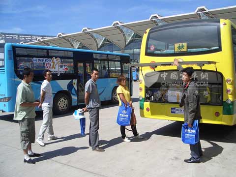 在葫芦岛市公共汽车公司,多位该公司领导都来到黄海巡展客车上亲自试乘、试驾。在整个过程中,黄海客车营销公司辽宁地区公交车销售总经理黄总一直陪同着公汽公司的诸位领导。
