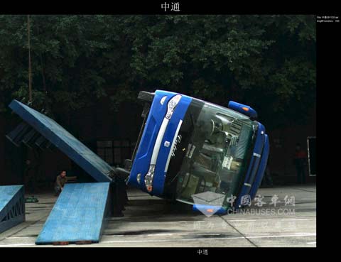 客车侧翻后,除部分侧窗玻璃和前挡风玻璃碎裂外,整车骨架几乎没有变形,没有突出物侵入车身生存空间,车辆上部结构具有足够的强度和刚度确保乘客的安全。中通客车以出色的表现,顺利通过世界上最严格的认证之一—澳大利亚ADR认证,现场的国家客车质量监督检验中心专家和澳大利亚汽车认证机构专家一致给予了高度的评价。