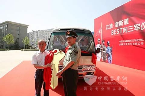 2009年6月28日,江淮·宝斯通公务商务客车正式成为中国人民解放军陆海空三军仪仗队用车。江淮汽车集团董事长左延安向三军仪仗队大队长刘士偦大校赠送了江淮·宝斯通客车(VIP车型)钥匙。