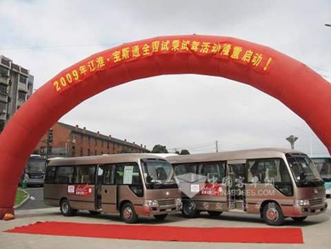 2009年8月11日,江淮客车公司销售总公司组织策划的2009江淮宝斯通全国性试乘试驾活动正式启动。本次活动受到了公司上下领导高度关注。公司王泉龙总经理、许树生副总经理、夏帮守总经理助理、销售总公司章晓明总经理、林斌副总经理、王祥虎副总经理、蔡瑞玲副总经理等均出席了本次活动。江汽股份底盘营销公司查宝应总经理、于华部长也应邀亲临启动现场。