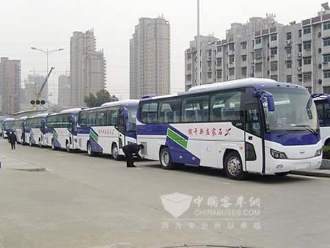 2009年11月30日,江淮客车一片喜气洋洋,32辆江淮·星巴披红挂彩整装待发,江淮·星巴又一次批量进入安徽市场。