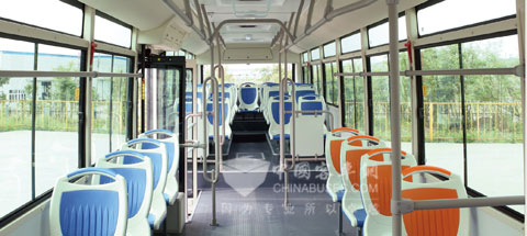 恒通纽曼CKZ6116前置二级踏步公交客车便是其中的佼佼者,该车型是国内首创的前置发动机低地板客车(地板离地高度仅为650mm)。相比普通前置客车的三级踏步结构,二级踏步因为离地更低,在运行过程中和后置客车一样平稳舒适,同时乘客上下的流通速度上也大大提高,按平均每个乘客较三级踏步节约1秒计算,每站上下15-25人,往返30-35个站点计算,该车每趟便可节省15-20分钟左右的交互时间,大大增加运营时间。