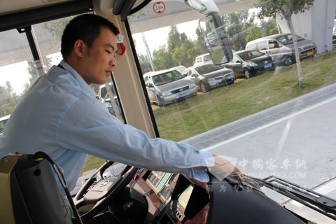 一上车,我开门见山问他,您是专职做亚运车辆保洁的吧?小伙子笑答,他是专职司机,跑番禺市桥到亚运城专线。交谈中,得知这位司机名叫何桂斌,已开公交6年了,前几年,基本上公司每年都让他换辆不同厂家的车子开,这三年,一直开的是海格公交。他告诉记者,海格公交的质量很不错,开了这么多年,感觉海格车的平顺性好,故障率也低,让他省力省心不少。不象以前他开的其它车子,小毛病三六九,大故障季季有。