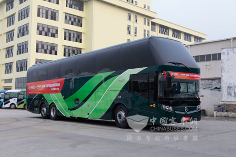用于接送中央电视台及福建电视台等多家媒体记者的金旅XML6148特大型客车