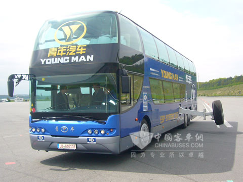 2011新年伊始,青年客车正式在国内全面导入ESP安全系统,这也是国内第一家准备全面导入ESP的客车企业。ESP应用试验根据车辆的长度、高度、车重、车辆的重心,通过试验,模拟车辆在极端情况下的车辆状态,对控制模块的一些关键参数进行标定。国内目前还没有试验场能完成这个试验,青年客户的ESP试验都是在欧洲完成。整个ESP试验大约持续一年左右,主要分成冬季试验(低附着系数)和夏季试验(高附着系数),冬季试验在瑞典北部靠近北极圈的地方的Arjeplog的试验场进行,夏季试验(高附着系数)在德国斯图加特附近Boxberg的Bosch试验场进行。