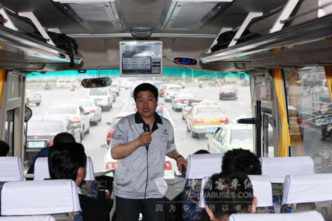 黄海客车底盘研究所副所长王琳在车上为大家讲解