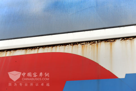 “珠海靠近海边,气候对车身的腐蚀比较严重,过去在佛山有一个大修车间,只要是从珠海过去检修的车,修理工一拆开来,车身骨架霉烂的特别厉害。”黄根亮回首从前,往事似乎历历在目。他还说:“没有经过电泳工艺处理的客车,一般使用三年左右,就开始生锈,轮罩、车窗下沿最容易先被腐蚀。第一批有电泳的金旅车,用了三年多,现在还没有生锈的迹象,漆的耐新程度比没电泳的好得多,哪怕是用镀锌板的车身,也会出现氧化、起泡。电泳处理过的金旅车一点问题都没有!”关于电泳工艺,他还举出了一个实际的例子,他说:“珠海拱运原来有一批韩国某品牌客车,车身是采用电泳工艺处理过的,天窗没有采用(电泳工艺)。结果使用几年后,天窗几乎全部霉烂了,脱漆、锈蚀的很明显,车身就没多大变化。”电泳工艺的优势由此可见一斑。