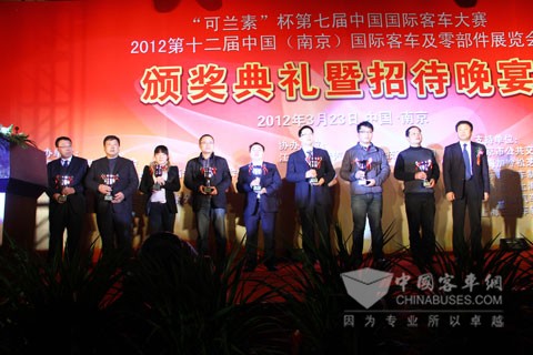 此次参展的4款展车均获大奖:JNP6122DE旅游客车和JNP6180HEV混合动力城市客车双双获得“2012 CIBC年度新能源客车冠军奖”,增程式超级电容城市客车JNP6122UC荣获“2012 CIBC年度最具影响力新能源客车奖”,JNP6105GC城市客车荣获“2012 CIBC年度最具人气绿色时尚客车奖”。