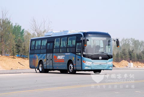 该两款产品最大的特点是既有电动客车的特色,又兼顾公路与公交客车的使用工况。将轻量化与安全可靠节能作为设计原则,在车内布置、内饰设计、高压电池管理、电机控制、能量管理与回收利用、系统集成方面进行创新。该产品采用快充或快换锂电池,变频可调冷暖一体式电动空调,CAN总线与智能电子电控技术,保障车辆的安全、节能、可靠与乘客的信息化需求。
