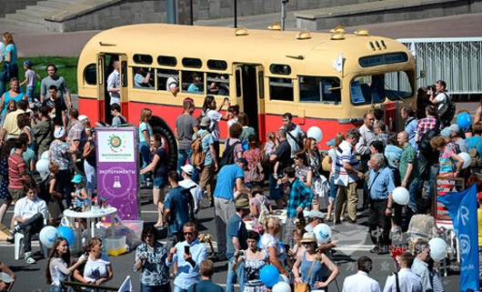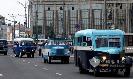 此次共有14辆珍贵且极具历史意义的老式公交车参与了在莫斯科市中心的环线游行。游行路线途经特维尔大街、大卢比扬卡大街及斯列金卡街,最终所有老式公交车都汇集在老式汽车展览会上。