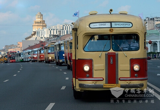 据2015年8月8日消息,为纪念公交线路开通91周年,俄罗斯首都莫斯科举行老式公交车纪念游行。