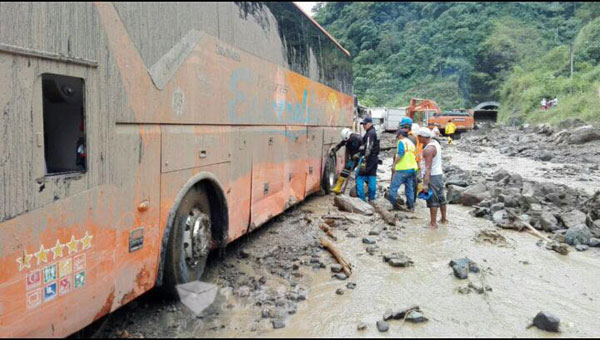 中通客车前往灾区的路艰难泥泞,依然勇敢前行!