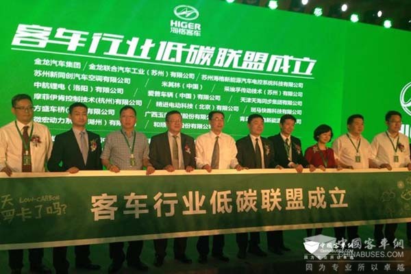 在行业领导、专家学者和诸多媒体的共同见证下,苏州金龙海格客车联合配件供应商、使用客户和终端乘客组建的“客车行业低碳联盟”正式成立,共同倡导行业进入低碳时代,践行绿色发展理念。