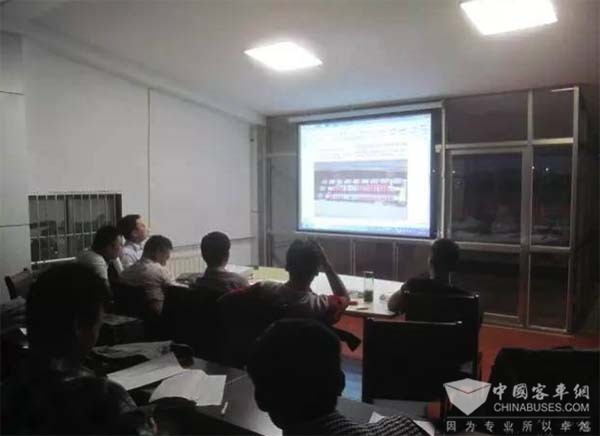 接到通知后,中通济宁服务站连夜就“绿盾”行动进行了组织和学习 济宁地区是中通新能源客车保有量较大的一个市场,排查任务艰巨,工作量大。据中通售后服务山东区域负责人赵培忠的介绍,在得到行动的安排通知时,为了保证行动在济宁地区及时、有序推进,他当天就赶到济宁,连夜组织了“绿盾”行动的活动安排会议。根据行动的时间安排,协调供应商,并对每位员工的工作任务、市场分配、排查进度等进行了详细的布置,同时对行动中可能遇到的典型技术问题进行了讲解和培训。会议召开的第二天,济宁地区的“绿盾”行动全面启动。