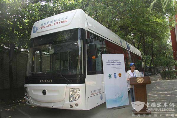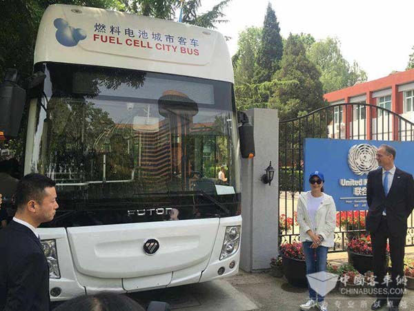 福田欧辉氢燃料电池客车亮相北京联合国大楼