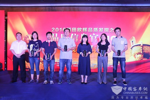 与此同时,福田欧辉作为我国运输装备制造的领军品牌之一,将高度重视三方的反馈,并将在产品设计、服务创新等生产环节采纳这些建设性的意见,进一步提升客车产品品质。福田欧辉客车副总裁、销售公司总经理刘国强表示,福田欧辉品质监察管、品质体验官与品质信息官的设立,不仅使欧辉有了严格的多方位监督,也为整个商用车行业构建了全新的模式,对进一步助力中国客车品质升级添彩。