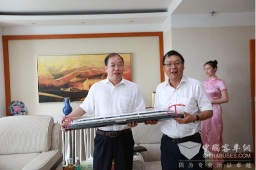 中车株洲所总经理李东林赠送高铁车模与奇瑞万达总经理王雨臣