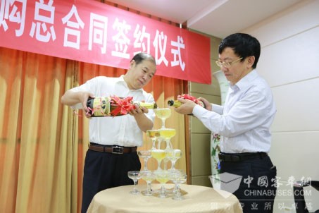 中车时代电动董事长兼总经理申宇翔与奇瑞万达总经理王雨臣同庆签约仪式全满完成
