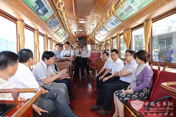 参观期间,冯飞副部长还现场察看了银隆研发的新能源客车,对其技术特点作细致认真的询问,随后与全体参观嘉宾一同登上环保“铛铛车”,大家在亲切交谈的同时也对舒适安全的乘坐体验赞不绝口。