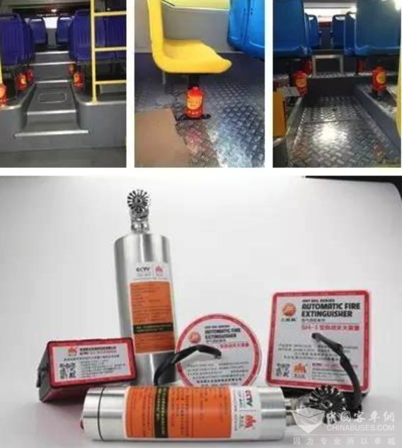 除了装配传统的导管式、储压式干粉灭火系统,还在车辆上新增了封闭和半封闭空间高效自动灭火装置,电池舱、三电系统及电控舱、车厢内分别增加了气溶胶喷雾灭火装置和泡沫灭火装置,能瞬间释放抑氧阻燃纳米颗粒,实现隐患区域、燃火区域全灭火覆盖,对火情起到快速高效的控制,并弥补了传统干粉灭火短板,双重保障扬子江纯电动公交车的运行安全。