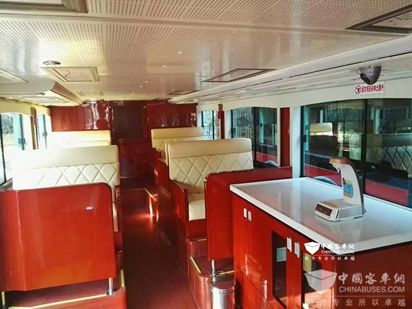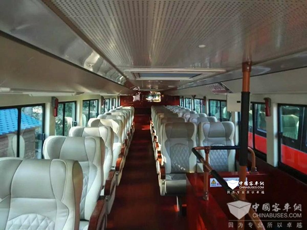作为国内首条纯电动双层观光车线路,银隆新能源在观光车的设计上也别具匠心。车内的豪华配置,让乘客享受航空式的乘坐体验。车内多媒体显示屏,对沿线的每一处景点及历史在车辆到站前作双语推送,同时网罗旅游指南、商业区、酒店资讯等相关信息。与一般观光车不同的是,车内还设置了实物展示柜,向游客展示、销售“京味十足”的旅游纪念品、宣传手册、光盘、吉祥物等,增添旅行趣味。