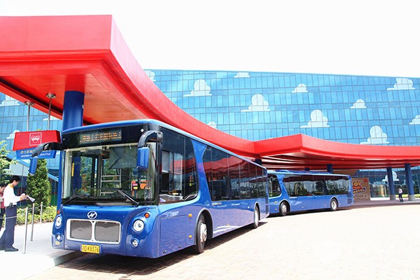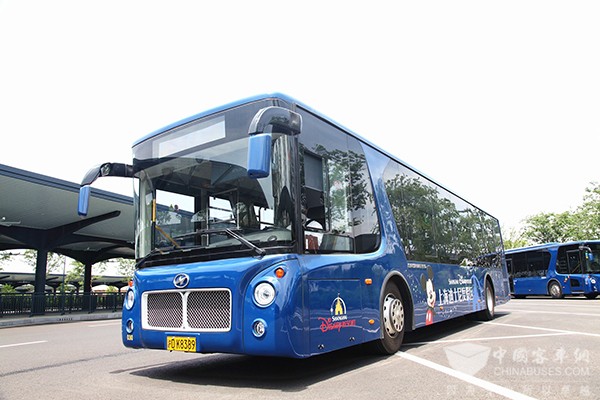 迪士尼度假区里的海格巴士海格迪士尼乐园接驳巴士整车造型新颖独特,英伦外形糅合了水墨江南的复古元素,再搭配蓝色的车身,显得既古朴典雅又不失现代化。整车车身长12米、宽2.55米、高3.3米,车内过道净高大于2.2米,设置32个座椅。座间距大,通道宽敞,即使是身形偏高大的外国游客,乘坐起来也是宽绰舒适。车身两侧贴心使用大玻璃窗设计,让周遭奇景一览无余。